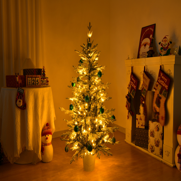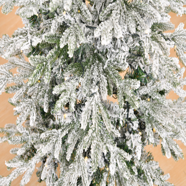 2. Snow-Flocked Charm: With meticulously crafted branch tips dusted in a delicate snow flocking, this tree creates an enchanting winter wonderland right in your home. The realistic snow-kissed branches provide the perfect canvas for your holiday ornaments, transforming your space into a cozy, festive retreat.
